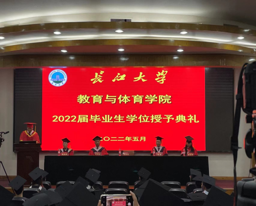 (文 帅海忆 摄 刘毅)依依惜别母校,深深情长留心间。2022年5月28日晚七点,bat365官网利用线上线下相结合的方式在11教学术报告厅召开2022届毕业生学位授予仪式。学院导师代表张相乐、杜光友、熊猛、陈竞蓉、路国华及全体辅导员老师、100余名应届本科毕业生、硕士毕业生代表参加了线下仪式。