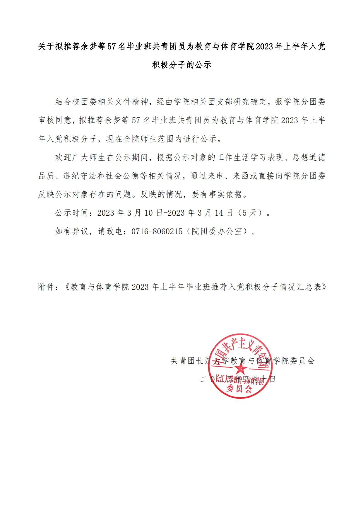 关于拟推荐余梦等57名毕业班共青团员为bat365官方网站2023年上半年入党积极分子的公示