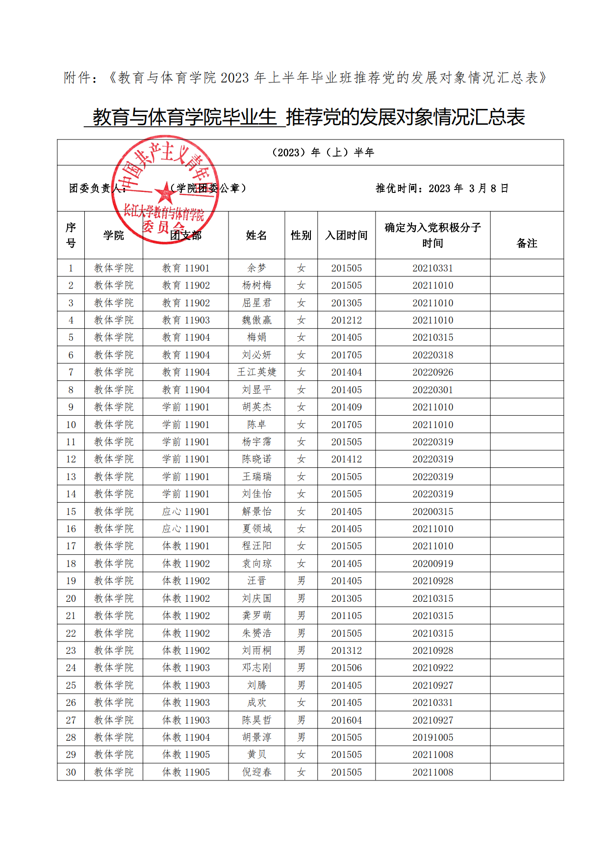 关于拟推荐余梦等48名毕业班共青团员为bat365官方网站2023年上半年党的发展对象的公示