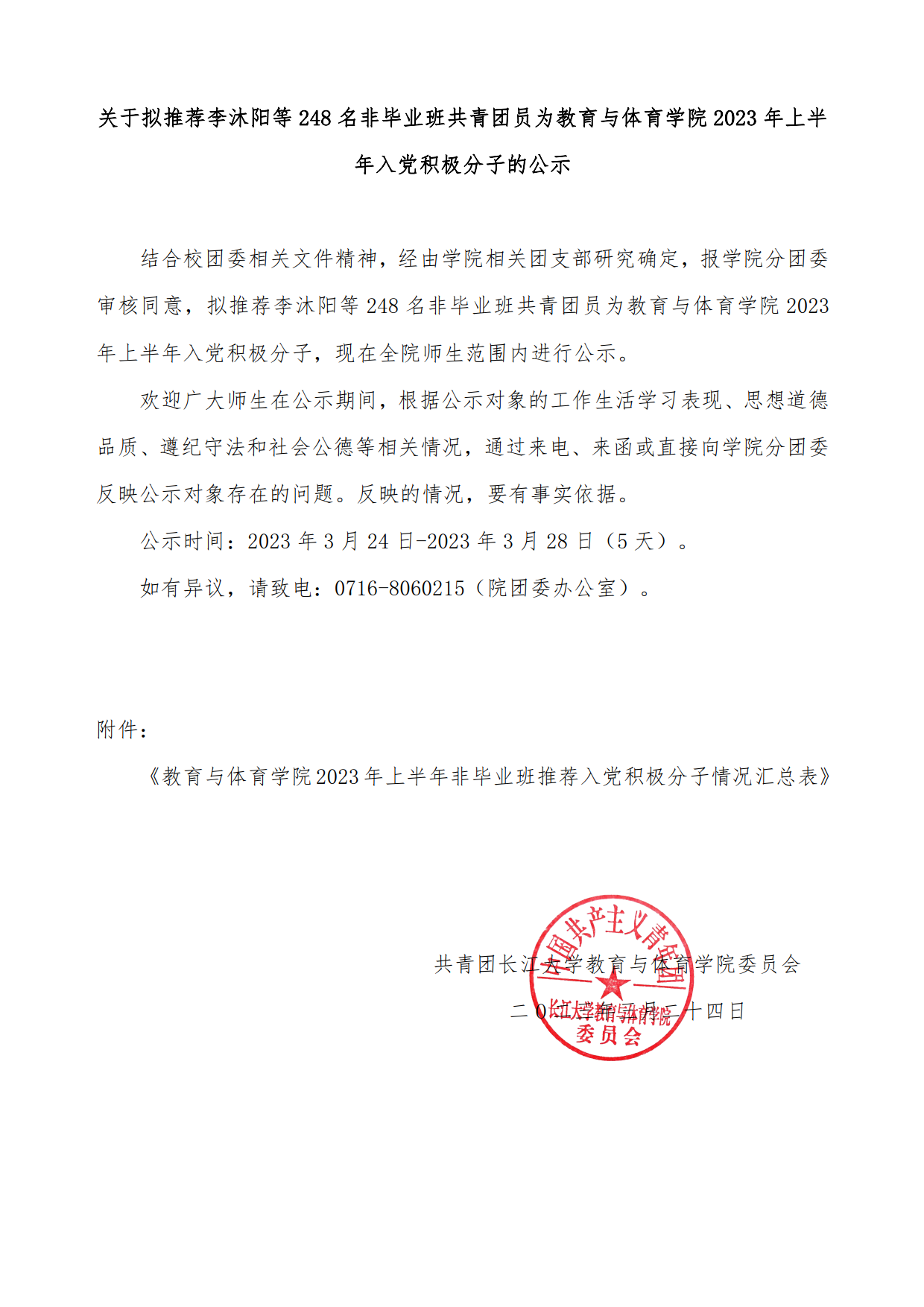 关于拟推荐李沐阳等248名非毕业班共青团员为bat365官方网站2023年上半年入党积极分子的公示