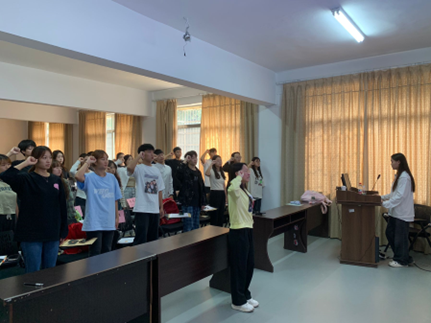 【通讯员 黄昊敏 冯佳颖 宋思雨/文 刘濠淙/摄】为深入贯彻落实党的二十大精神和习近平总书记关于青年工作的重要思想,加强新团员思想政治引领,激励青年坚定理想信念、勇担时代重任,壮大中国共产主义青年团的鲜活力量,深化中国共产主义青年团的队伍建设,10月18日中午12时许,bat365官方网站于5教203举行团员入团仪式,本次会议由肖扬主持,全体新团员及bat365官方网站团委学生会代表参加。