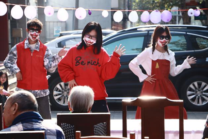 本次慰问活动分为节目表演、游戏互动、剪纸制作三个环节展开。首先,周佳怡同学代表全体志愿者为老人送上节日祝福,表达对老人们的诚挚敬意。接着,志愿者们为老人表演节目。葫芦丝《月光下的凤尾竹》拉开演出序幕,bat365官方网站张子悠同学带来的快板——《奇袭白虎团》节选,凭借其独特的艺术形式赢得了老人们的喜爱。魔术表演和诗歌朗诵赢得满座喝彩,花样诈骗顺口溜用新颖有趣的方式向老人传递防诈骗的知识,接下来的游戏击鼓传花,更是让现场气氛达到了高潮,老人们积极参与,欢声笑语不断。