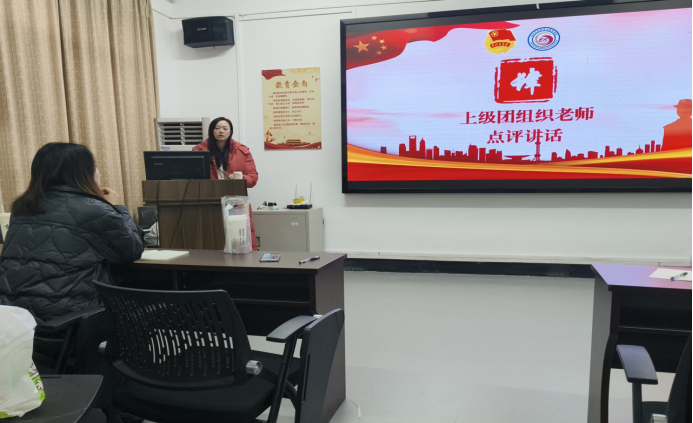 第四项议程是上级团组织杜岳青老师点评讲话。杜岳青老师对此次组织生活会提出了表扬和肯定,同时也对团员发言进行了点评和指导,告诫所有团员要重视每一次发言机会,鼓励其他团支书落实组织生活会,使团会有意义、有效率、有作用。