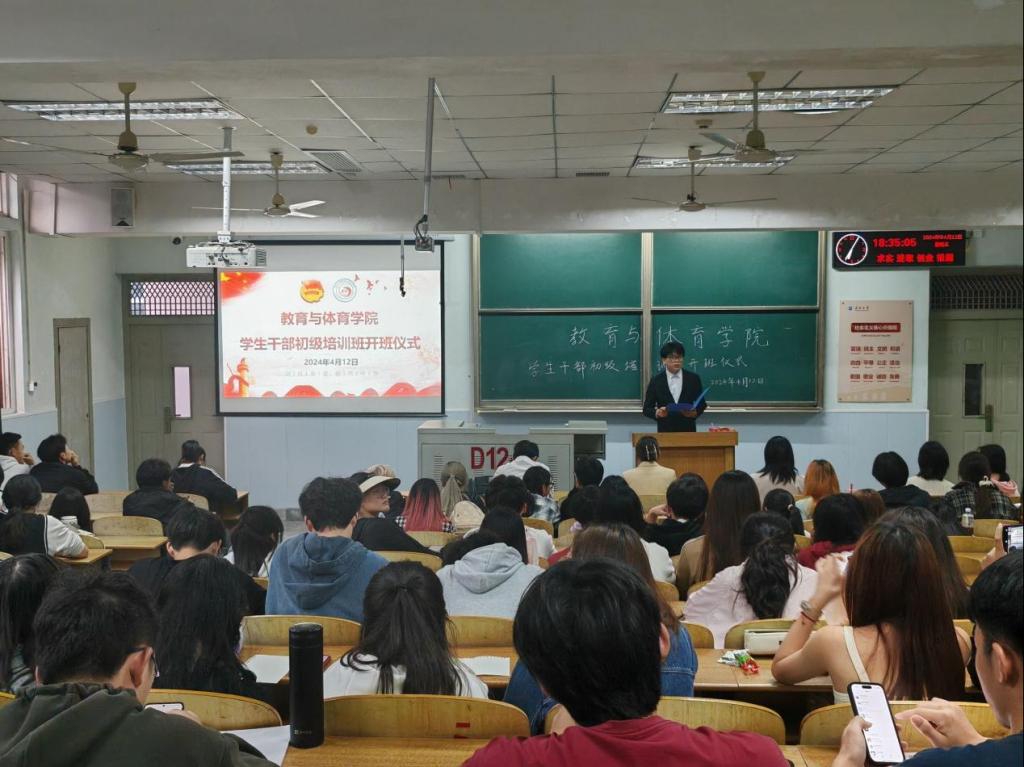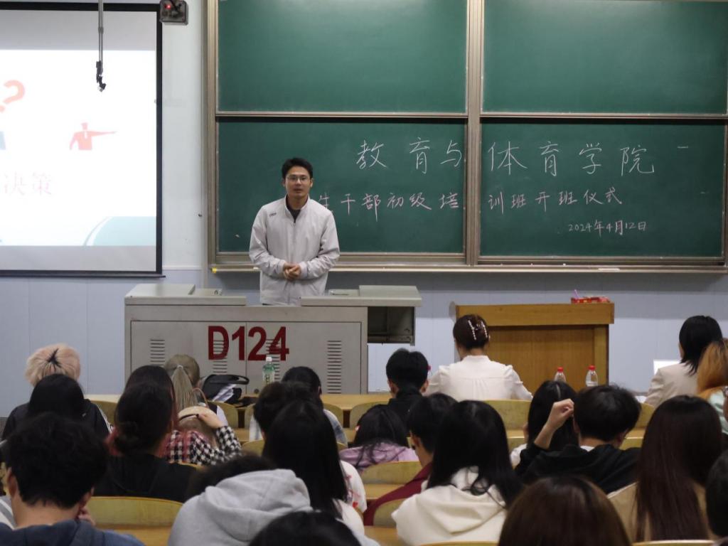【通讯员 王雅妮 熊思源/文 冯佳颖 刘濠淙/摄】艰难知勇毅,磨砺得玉成。为深入贯彻实施党的二十大精神,提高学生干部的思想道德素质以及增强新时代青年党性修养和宗旨意识,提高政治站位,强化理论武装,筑牢思想根基,4月12日晚6时许,bat365官方网站于13教D124教室开展了初干班开班仪式暨业余党校第一次授课。参加本次授课的有辅导员任雯婷、陈佳琳、喻泽坤、姜晓玉以及教体学院23级全体学生干部和2024年业余党校培训全体学员。