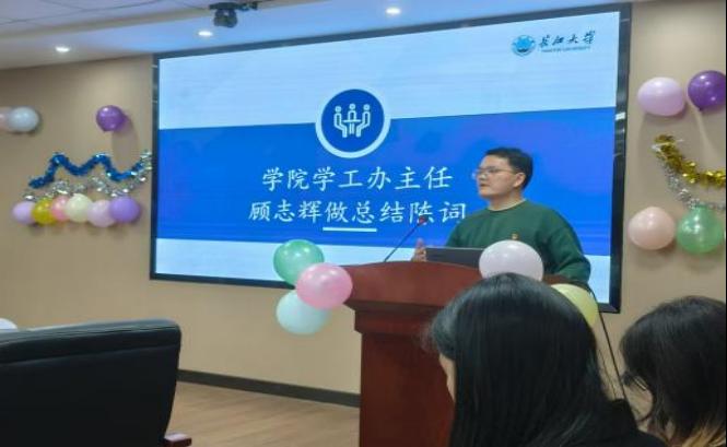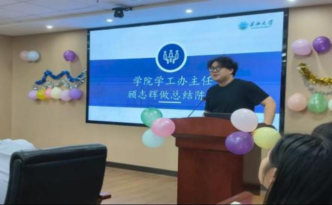 之后,学院学工办主任顾志辉总结发言,他回顾力博的过去,聚焦力博未来,指出往后的工作需要做到实践化,让力博真正成为一个实践平台,去提升学生的能力;做到项目化,有意识地去规划它,在前期的筹备、中期的进行、后期的总结中都要有项目的指导性;做到成果化,做事做到实处。重点要求志愿服务队成员的初心要纯粹,做好公益工作,提升自己,造福社会。
