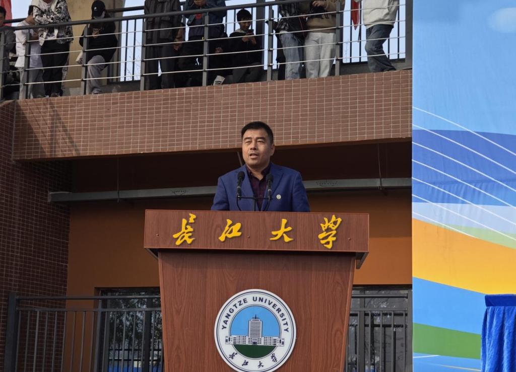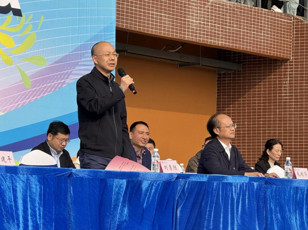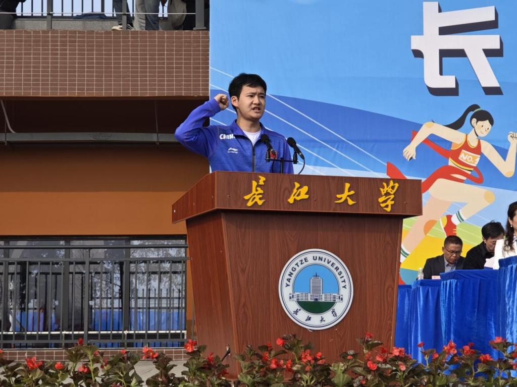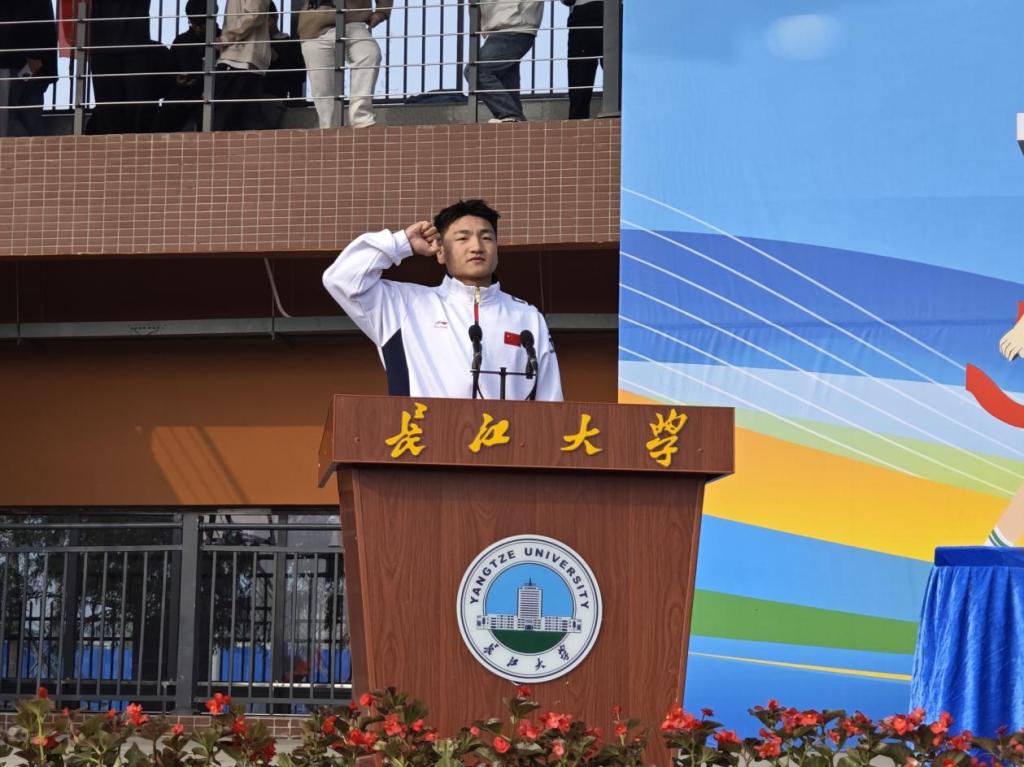 在国歌声中,全体肃立,五星红旗缓缓升起。随后,副校长许锋致辞。他回顾bat365官网运动健儿们在各项赛事中取得的辉煌成绩,鼓励运动员们赛出青春活力,赛出长大风采,将求实、进取、创业、报国的长大精神融入体育运动中。许校长表示,bat365官方网站一直坚持贯彻健康第一的教育理念,在今年,对体育馆及运动设备进行维护改造和升级,推动全校迎来环境一流的运动环境,鼓励同学们在运动中增强体质、磨砺意志、锤炼品格,最后,他希望全体运动员以饱满的激情和昂扬的斗志赛出成绩,赛出风格,全体工作人员秉承公平公正原则,维护运动会的稳定进行。