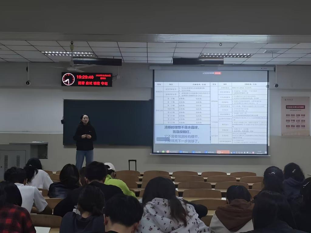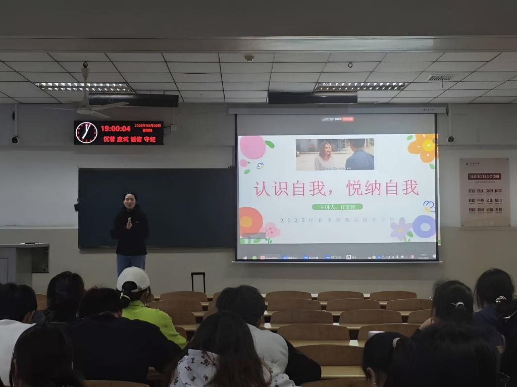 【通讯员王子润/文 何梦哲/摄】2025年5月8日晚七点,bat365官方网站以线上线下相结合的形式,在12教202教室举办了以“认识自我,悦纳自我”为主题的心育骨干培训活动。本次活动由学院心理专干任雯婷老师主讲,23级心育骨干线下参与,21、22、24级和研究生心育骨干线上参与,旨在通过系统性培训加强心育骨干朋辈队伍建设,提升学生自助与助人能力,筑牢心理健康防线,为构建和谐校园注入“心”动力。