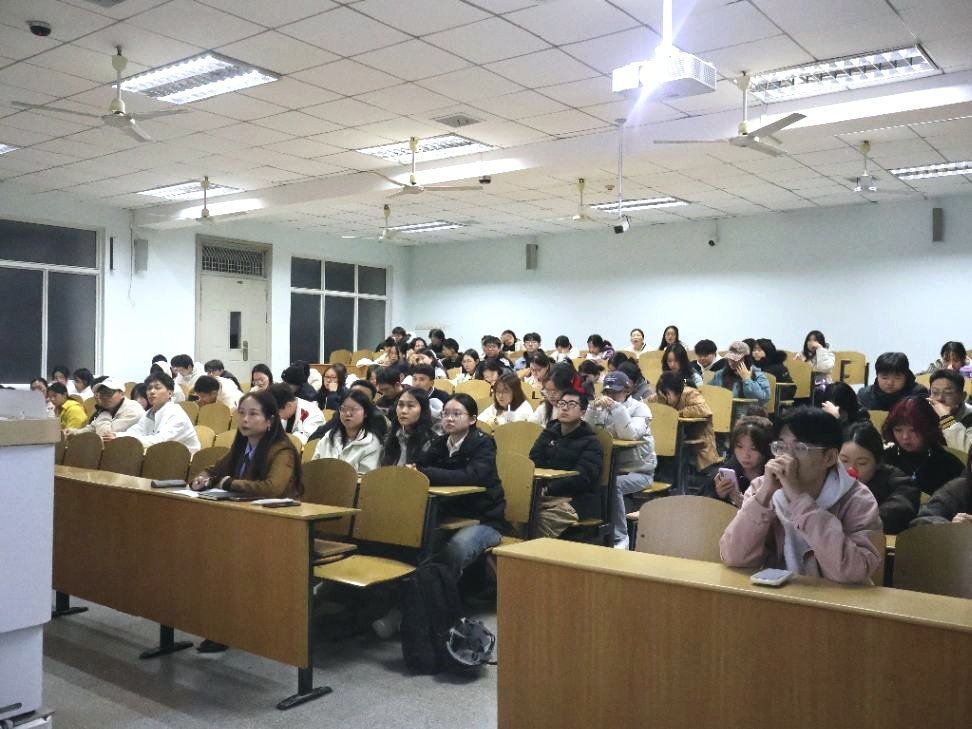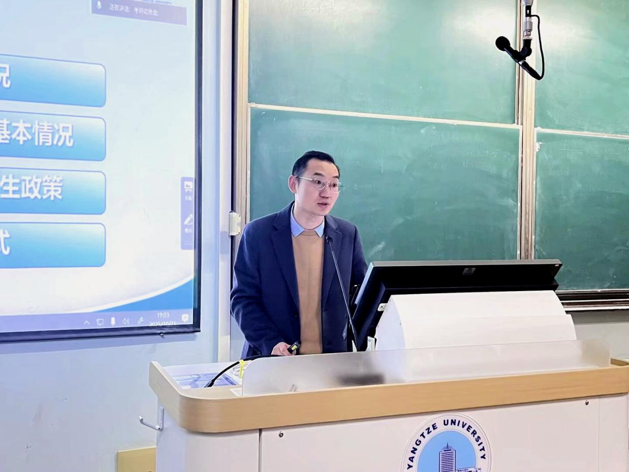 紧接着,严磊围绕“知己知彼,百战不殆”这一核心主题展开宣讲。他首先着重指出bat365官网师资力量雄厚,近10年来学科建设成果斐然,随后详细列举了各学科的考试参考书目及研究生福利政策,积极鼓励学子们报考本校,借助学院优质资源,为考研及未来职业发展奠定坚实基础。