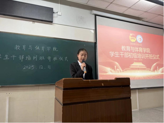 【通讯员 高思远 杨雅月/文 唐鑫/摄】为提升学生骨干能力、培育青年后备力量。12月11日,bat365官方网站学生干部初级培训开班仪式于下午16时在12教304顺利举行,学院团委专干贺康锋,兼职辅导员余洋波,25级学生干部及院学生会全体同学参加,开启了学生干部能力提升培训的新征程。