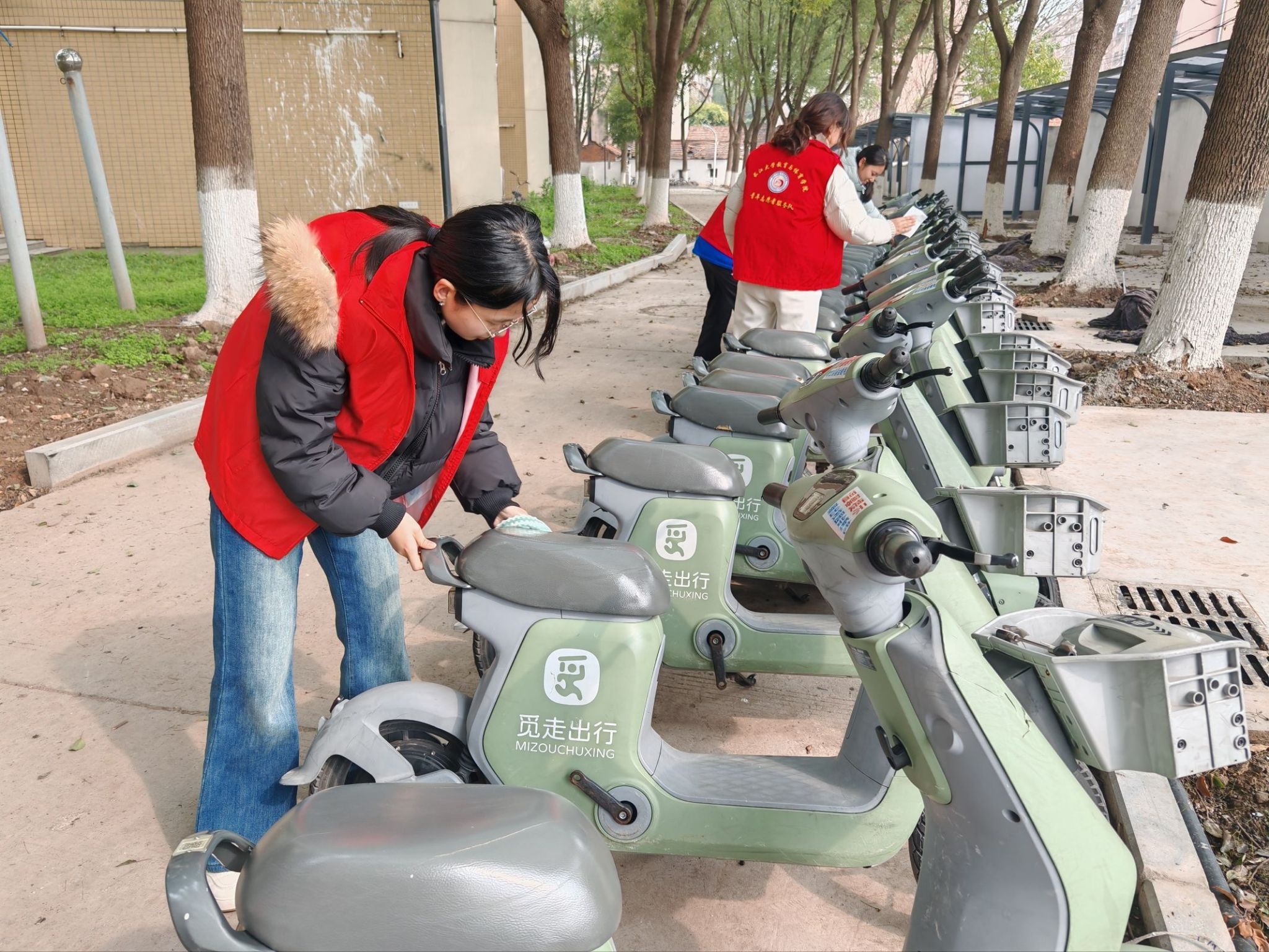 本次活动由学院青年志愿者支队精心组织,志愿者们各司其职、通力合作,对南苑周边的共享单车进行了彻底的清洁维护。