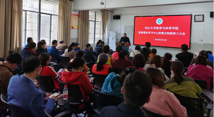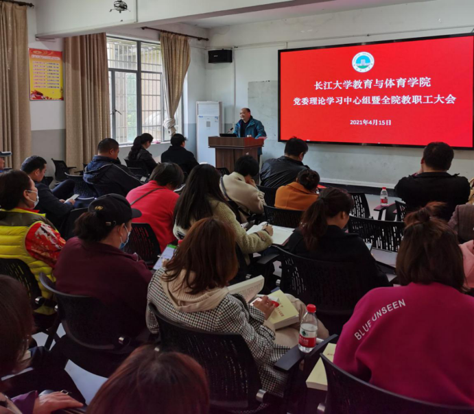 4月15日下午,教体学院在5教203召开党委理论中心组学习暨全体教职工党史学习教育动员大会。