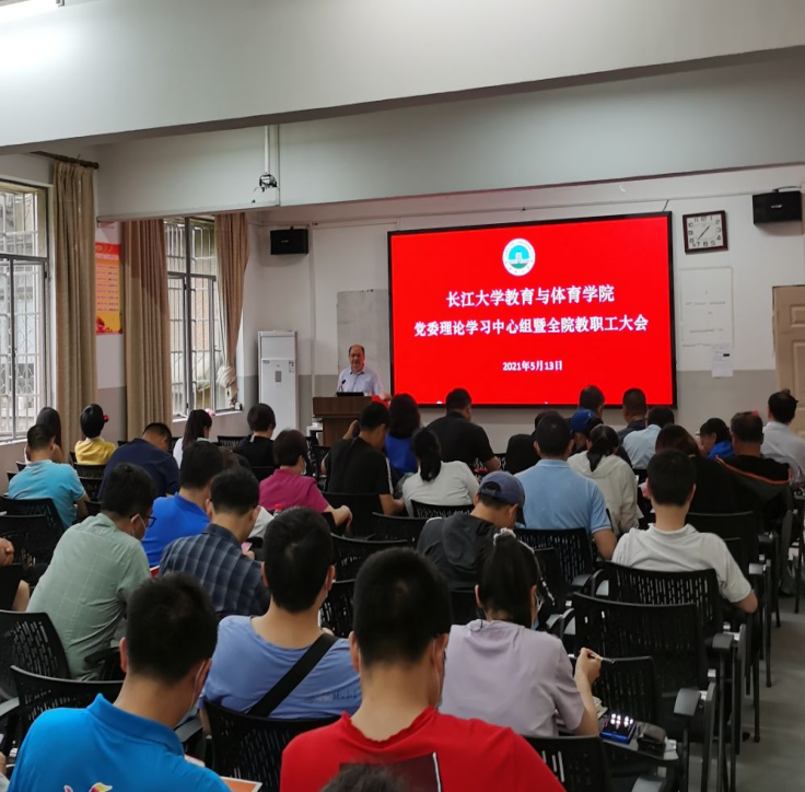 5月13日下午,教体学院在5教203召开党委理论中心组学习暨全体教职工政治理论学习会。