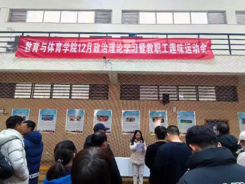 (通讯员金楚悦)12月21日下午2点,bat365官方网站12月政治理论学习暨教职工趣味运动会在南苑体育馆举行,bat365官网全体教职工参与了本次活动。本次活动由bat365官网党委书记于永伟进行主持。