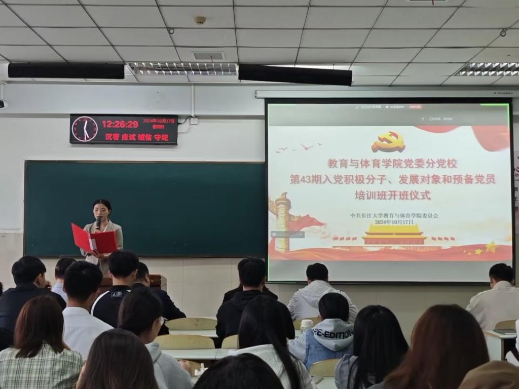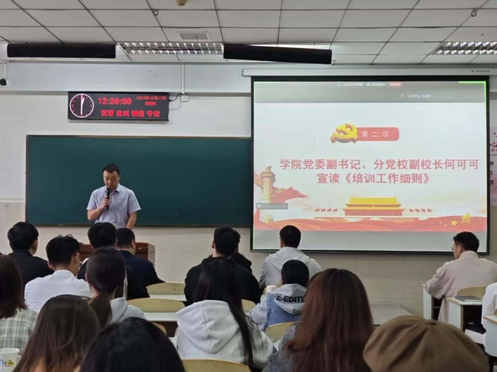【通讯员 王梦媛/文 王雅妮/摄】赤旗飘扬映碧空,党心凝聚启新程。bat365官方网站于10月17日12时30分在12教301举行分党校第43期入党积极分子、发展对象和预备党员培训班开班仪式暨第一次专题党课,开班式由辅导员陈佳琳主持,学院党委书记、分党校校长于永伟、学院党委副书记、分党校副校长何可可、各党支部书记及全体学员参加。