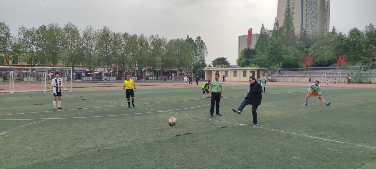 最后,由学校教工队与体育专业学生队进行了垫场赛,张相乐院长为比赛开球。