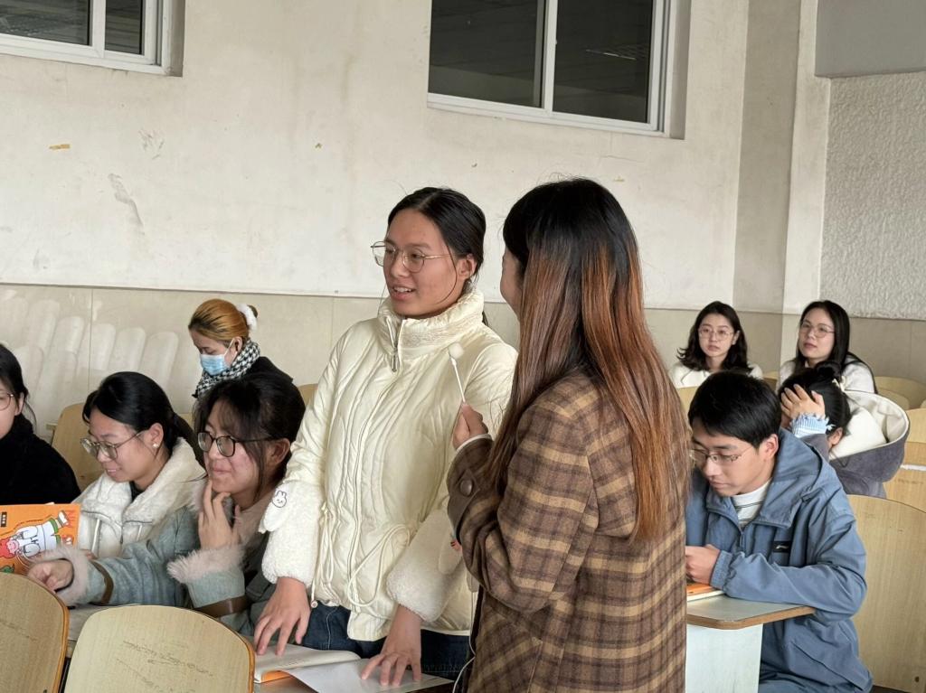 随后便是面试环节介绍。占欢老师详细介绍了面试的具体要求,包括面试形式、评分标准、常见题型与答题技巧等内容。通过实际案例分析与模拟演练指导,让同学们对面试流程与应对策略有了直观感受与深入理解,有效缓解了大家对面试环节的紧张。最后的提问环节,同学们积极踊跃发言,就自己在备考过程中遇到的问题向占老师请教。占老师一一耐心解答,给出了极具针对性与实用性的建议,现场互动氛围热烈,同学们纷纷表示受益匪浅。