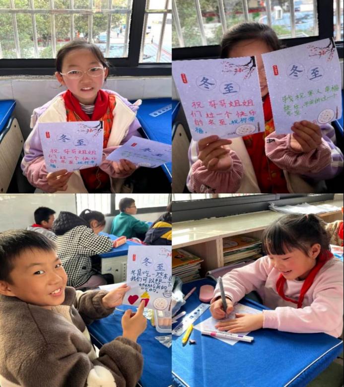 最后,志愿者为小朋友们分发了冬至贺卡,鼓励小朋友们制作有关冬至的创意贺卡,为家人们送上一份冬至祝福,不少同学为此次前去宣讲的志愿者们送上了自己最真挚的祝福:“希望哥哥姐姐们冬至快乐,天天开心!”在一双双纯真的眼睛里,志愿者们深深地被童真童趣所感染。