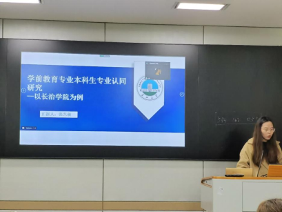 张艺萌同学就“学前教育专业本科生专业认同研究——以长治学院为例”进行了汇报,她从自身专业出发,首先讲述了研究该主题的缘起,然后从研究对象与方法 、研究结果与讨论、研究结论以建议等几个方面阐述了自己的观点,具有很强的现实意义。