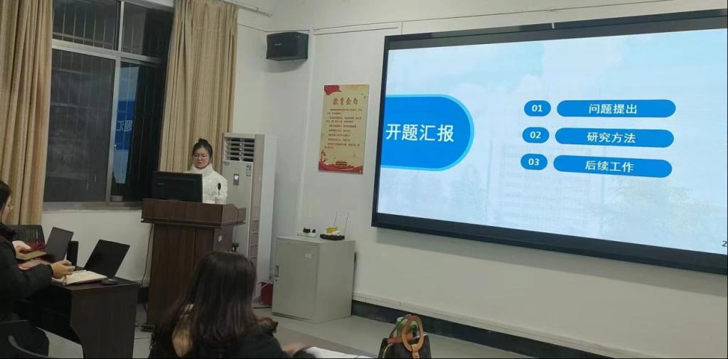 陈錾昕同学汇报主题为《基于微博文本内容的青少年文化自信研究》,她从问题的提出、研究方法、后续工作安排以及研究困惑四个方面展开,其基于文化自信的现象与研究方法创新,拟采用大数据分析技术对青少年微博进行热点事件、主题聚类及情感态度分析。采用访谈法,探讨文化认同对青少年文化自信影响;采用词频计量法,探究微博热点事件排行榜及青少年情感分析;设计团辅干预,通过提高文化认同来提升青少年的文化自信。