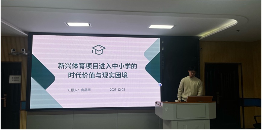 本次汇报主题多元且紧扣前沿,包括《新兴体育项目进入中小学的时代价值与现实困境》《社区焦点对大学生学业拖延的影响:一个有调节的双向链式中介模型》《新质生产力赋能体育产业高质量发展》以及《青少年篮球运动员专项体能训练的科学化路径探索》等。研究内容兼具理论深度与实践关怀,展现了研究生扎实的科研能力与创新思维。