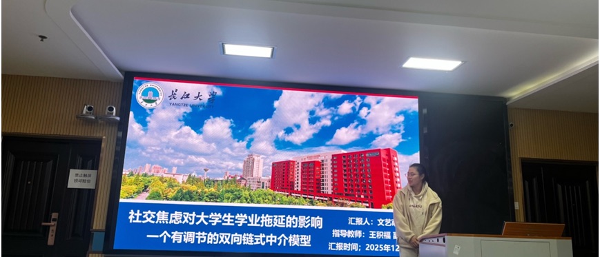 文艺萌同学汇报的主题为《社交焦虑对大学生学业拖延的影响一个有调节的双向链式中介模型》,该研究则将目光投向了大学生心理健康领域。该研究通过大规模问卷调查,构建了一个有调节的链式中介模型,精细地揭示了社交焦虑如何通过“短视频成瘾”和“学习倦怠”的双重中介作用影响学业拖延,并创新性地发现“体育锻炼”在这一机制中起到重要的调节作用。这一发现不仅深化了对学业拖延心理成因的理解,也为高校通过干预社交焦虑、倡导积极生活方式(如加强体育锻炼)来缓解学生拖延行为、提升心理育人质量,提供了切实可行的科学依据。