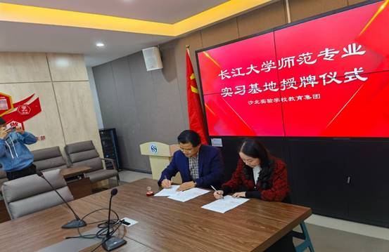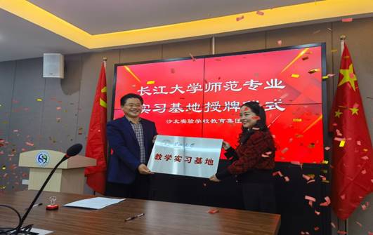 然后,张艳红副院长与何新陆校长进行了师范生教育实习基地的签约仪式,并为沙北实验学校授牌。