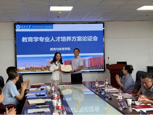院长张艳红为7位外聘老师颁发聘书,并介绍了bat365官网教育学专业师范认证的背景,提出以学生为中心,落实“立德树人”任务,深化教育教学改革。