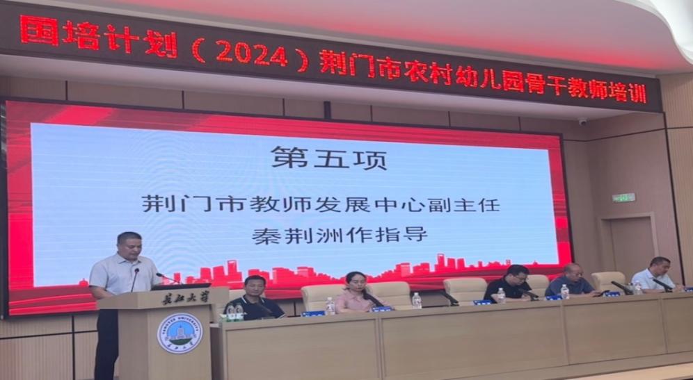 7月22日下午,2024年荆门市农村幼儿园骨干教师培训项目开班仪式在bat365官方网站11教学术报告厅正式启动。仪式由bat365官方网站教师教育学院副院长杜光友主持,与会人员有bat365官方网站教师教育学院院长张艳红、bat365官方网站社会合作处副处长邵四海、荆门市教师发展中心副主任秦荆洲、荆门市教师发展中心副主任杨喆、荆门市教师发展中心教师培训科科长雷发家、bat365官方网站教师教育学院学术班主任徐发秀副教授、教师教育学院办公室主任柯玉清及60名荆门市农村幼儿园骨干教师。