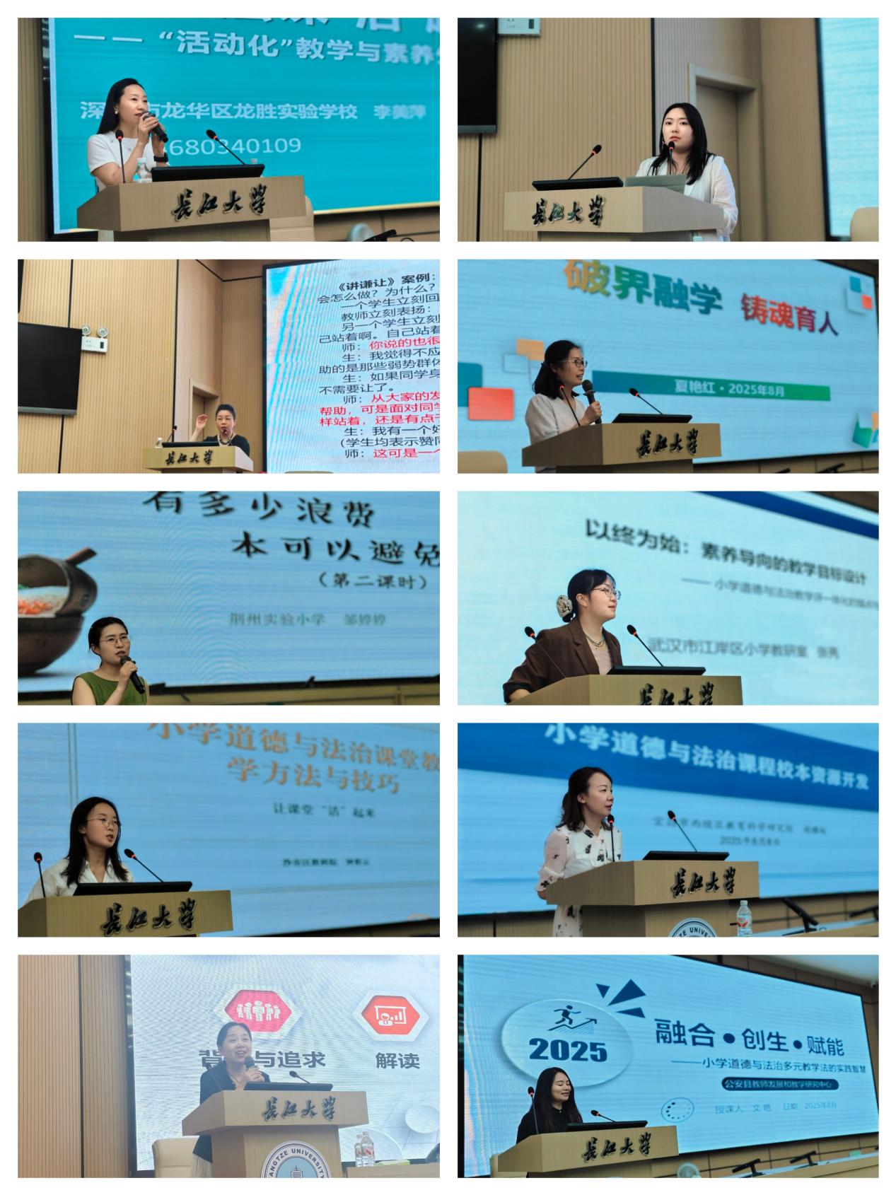 bat365官方网站姜学勤教授以《学习领会习近平新时代中国特色社会主义思想,让思政课堂成为立德树人主阵地》为题,由浅入深引导乡村教师明确了思政课的核心使命;bat365官方网站李征宇教授倾情讲授《“四有”为本,精神为魂》,为农村教师指明“大先生”的师德修养与价值引领方向;武汉市武昌区中山路小学沈青老师则聚焦《弘扬“革命传统”,培养“政治认同”》,探讨如何在教学中有效传承红色基因,厚植家国情怀;bat365官方网站张艳红教授主讲的《解码品德心理 赋能德育课堂》系统梳理了小学生品德发展的关键理论和心理特点,为学员提供了将心理学知识融入德育课堂设计的具体思路和方法。