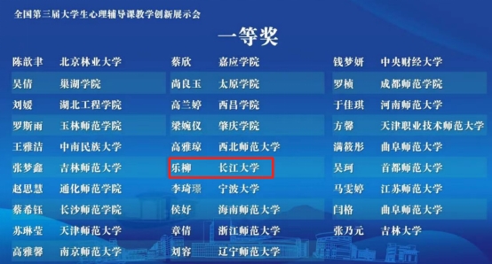 据悉,本届全国大学生心理辅导课教学创新展示会由教育部高等学校心理学类专业教学指导委员会、中国心理学会主办,浙江师范大学、华东师范大学、桐乡市教育局承办。比赛分初赛和决赛两个阶段,共有156所院校的288个作品参加初赛,其中99所院校的144名选手入围决赛。决赛分现场说课和现场授课两个阶段进行乐柳以扎实的理论基础、过硬的专业技能良好的精神风貌,在激烈的竞争中脱颖而出,荣获一等奖。